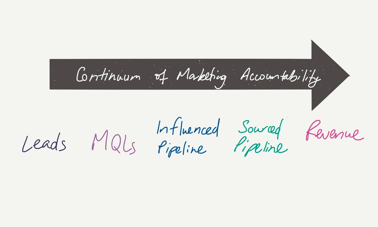 | In less mature organizations, Marketing teams report on leads generated, MQLs and even influenced pipeline as their ultimate accountability.